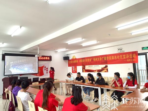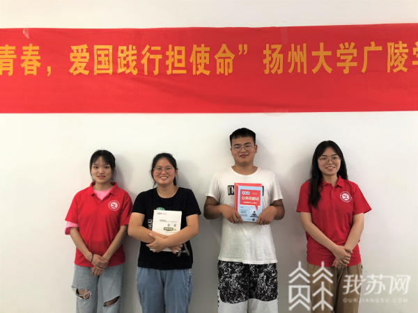 与此同时,扬州市蒋邑社区党群服务中心内也是热火朝天,大二学生朱颖等人正在给该社区的中青年居民们免费发放包括公务员、事业单位、教师资格证、会计师证等职业资格考试复习资料,这些资料均为他们前期向刚毕业的学长学姐们征集所得。