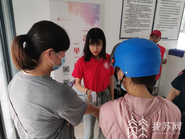 “您好,请出示苏康码,好的,我来给您测下体温,您的体温是36.8℃,正常,谢谢您的配合。”这几天,尽管高温酷暑,几名身着“红T恤”的大学生仍在盐城市新四军纪念馆入口处不停忙碌着。他们正是来自扬州大学广陵学院“红色星火燃青春,爱国实践担使命”团队的志愿者们,他们上午担任“义工”负责游客检测,下午3点便可集体“享受”馆内工作人员的专业讲解,追忆革命精神,感悟红色情怀。据了解,该团队共有52人之多,其中多是大一、大二的“00后”们。