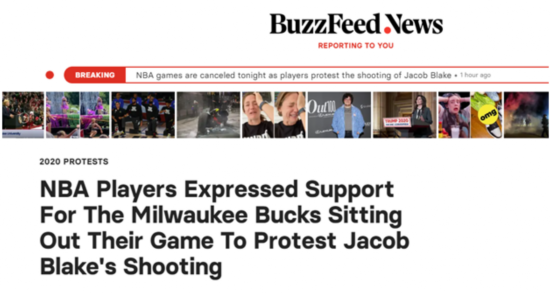 据“buzzfeed”新闻网26日报道,因抗议威斯康星州基诺沙市黑人男子遭白人警察枪击一事,原定于当地时间26日下午进行的NBA季后赛第5场密尔沃基雄鹿队对阵奥兰多魔术队的比赛,因雄鹿队拒绝出场比赛而暂停。由于球员的抗议,NBA同日宣布,原定于26日举行的3场NBA季后赛都将被推迟。