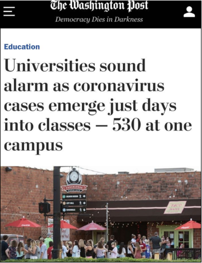 △《华盛顿邮报》指出,随着返校季到来,美国多所大学暴出群体感染事件