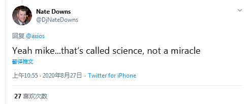 美国网友Nate Downs称:“迈克……这叫科学,不叫奇迹。”↓