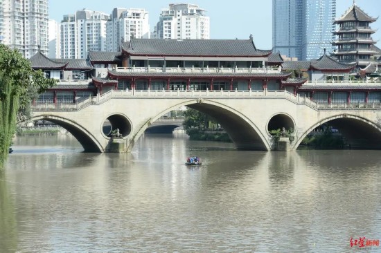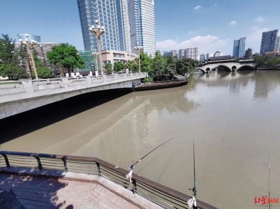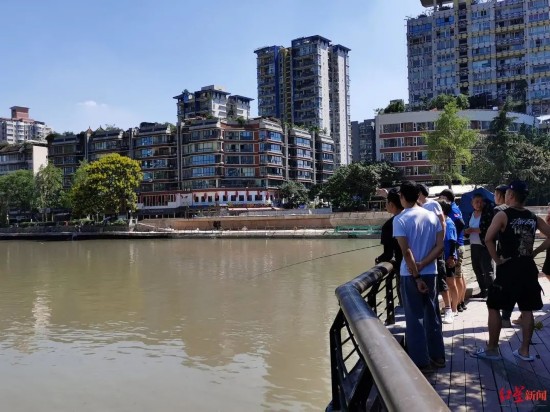 “我们两个跟着一起跑过去。”他说,两个人跑过了“听涛舫”,又往前到了合江亭,从步梯下到亲水步道,在往前左转就是府河与南河交汇的位置。“他喊那个女的,妹妹,你往边边上游。”