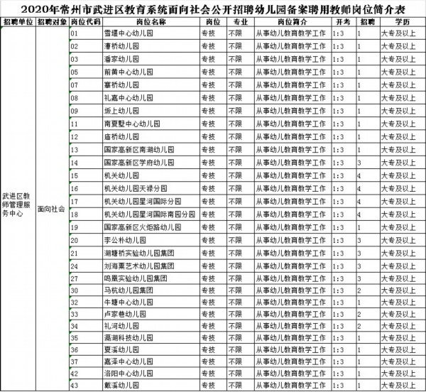 报考人员可通过武进人力资源网(www.wjjy.org.cn)-“武进区机关事业单位公开招聘”专栏及“武进教育”微信公众号查询招聘岗位及具体岗位条件等信息。