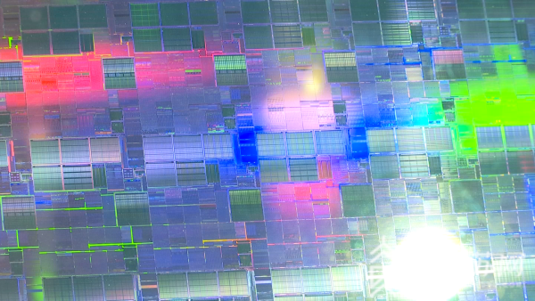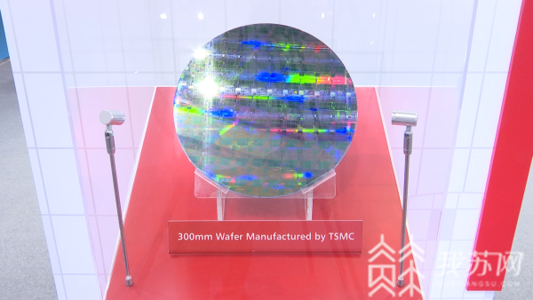 这个产品就是南京江北一家高科技公司所生产的晶圆片,上面一个个小方块就是芯片。像这样一个直径300毫米的晶圆片上,最多可以容纳几万个芯片。工程人员将非常 复杂的线路图经过一层层的工艺,刻印晶圆片上,从肉眼来看的话,这个晶圆片是平面的,厚度不足一毫米,但是从微观世界来看的话,这个晶圆片上有着非常复杂且立体的电路结构。
