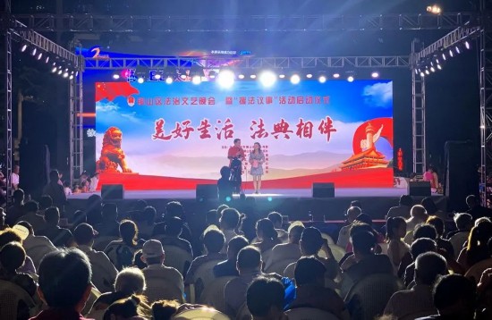 近日以“国潮汉风·乐动铜山”系列专场在徐州铜山上演,本期专场是一场以“美好生活 法典相伴”为主题的法治文艺演出暨“援法议事”活动,活动用人民群众听得懂的语言、喜欢看的方式,弘扬法治正能量,提高群众的法治素养,为前来纳凉的群众送上“法治文化大餐”。