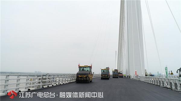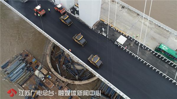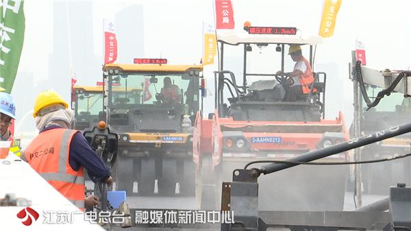 上午9:30,记者来到南京长江五桥主桥沥青摊铺现场。南京公建中心长江五桥项目现场负责人赖用满介绍,目前正在进行上游幅桥面的下面层施工,大概到9月下旬,将完成主桥所有桥面的上面层施工。夹江隧道右线已经完成一层沥青路面施工,左线目前正在装修,北接线已经全面进入上部结构施工,剩余的工程我们将在10月底完成。11月份全面开展交工验收工作,按照南京市委市政府要求,长江五桥今年必须建成通车。