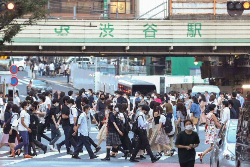 8月20日,日本东京,行人戴着口罩走在涩谷街头