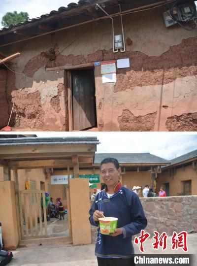村民吉好也求的旧居(图上)和新居(图下)。张浪 摄