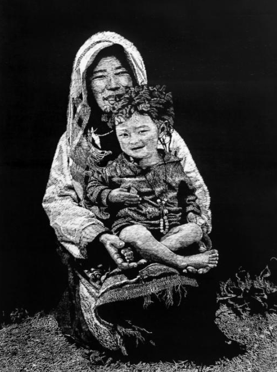 在大学期间,李洋学习了木版、铜版、石版和丝网版制作手法。她特别对黑白木刻情有独钟,创作了大量的人物肖像黑白木刻作品。