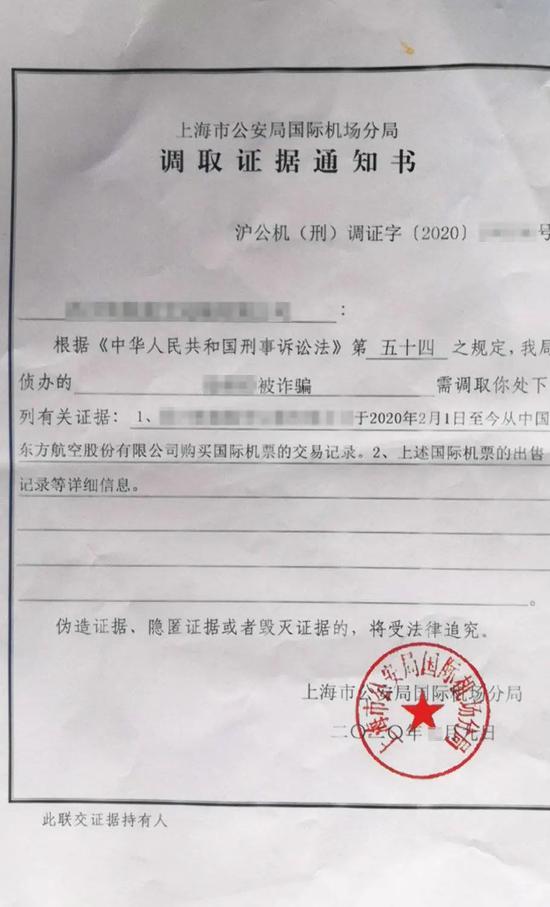 8月9日,宋刚收到上海市公安局国际机场分局调取证据通知书,得知内部有人员私自代理机票,最终以涉嫌职务侵占罪进行刑事拘留。目前,上海和北京公安成立了专案组,以诈骗形式立案调查,“有些旅客知道了去找代理人,代理人只好把钱退给他们。”