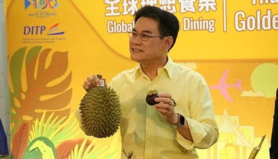 泰国副总理面向中国观众直播卖水果。图片来自网络