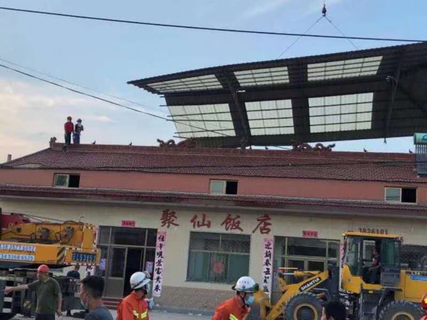 郑建勇说,因为坍塌造成了预制板叠压,所以救援难度较大。坍塌的楼板下面和楼上都有伤者,加之房屋的彩钢瓦屋顶,在救援展开时还在晃动,给救援也造成了一定困难。救援人员首先做的就是固定彩钢瓦屋顶,然后在下面用支撑方式在小空间打通生命通道。救援人员把能看到的伤者救出后,确保上层建筑里没有伤员时,才用千斤顶把楼板顶起。用吊车把房屋的近30平米的彩钢顶吊走。