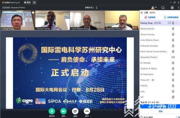 “国际大电网会议组织”成立于1921年,是全球领先的电力系统组织。该组织每逢双数年在巴黎召开大会,2020年受全球疫情影响,所有活动改为线上举行。在8月28号举行的此次专题年会上,国际防雷三大组织的主席共同出席并正式授权宣布成立“国际雷电科学苏州研究中心”。