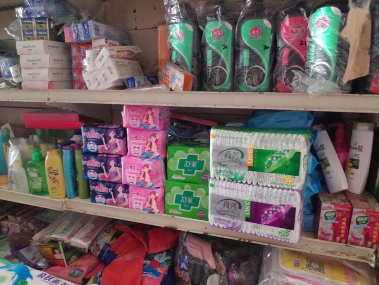 乡村小卖部里的卫生巾。(张茹玮/图)
