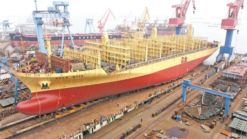 日前,中国船舶集团旗下中船澄西船舶修造有限公司为美国Dole公司建造的首艘910RFEU支线冷藏集装箱船胜利下水(如图)。此举标志着中船澄西造船成功进入了支线冷藏集装箱船市场,造船产品再添新船型。