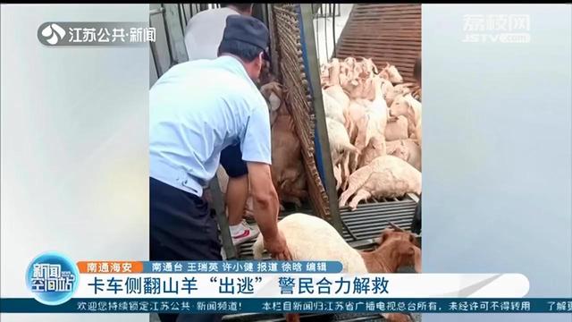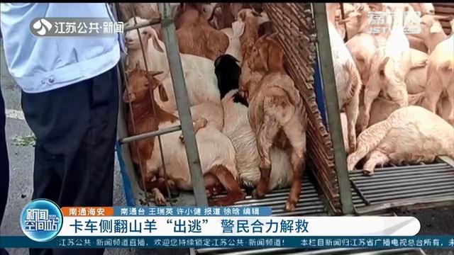 近日在南通海安,一辆来自如东的运羊卡车侧翻,车上50多只山羊散落一地。在当地村民、民警的合力帮助下,最终,50多只山羊都被抓了回来,一只没少。