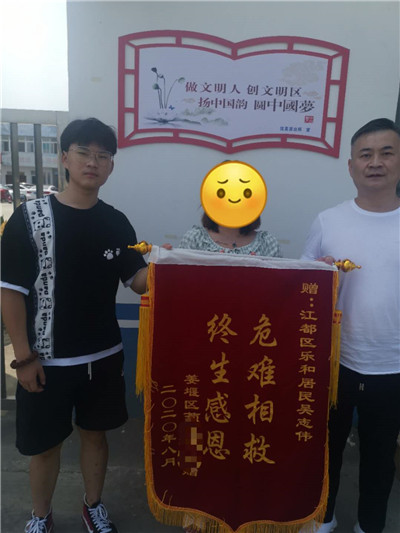 女生获救后向父子二人赠送锦旗