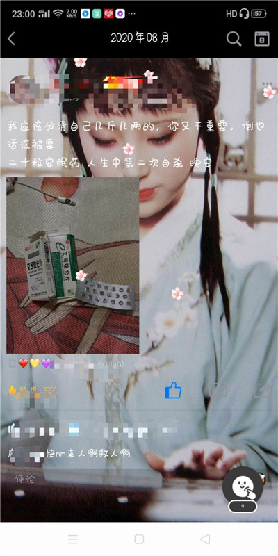 “我刚刚吃了二十颗安眠药。”10点41分,宋思泽所在的一个QQ群里,一名女网友突然发了一串文字。紧接着,这名女网友又在QQ群里发了一张安眠药包装盒。“爸,这个人有点不对劲,可能是要自杀。”宋思泽看到群里的文字和图片后,心生警惕,立即将看到的情况告诉了其父亲吴志伟。在听完儿子的介绍后,吴志伟顿感事情不妙,于是让儿子赶紧联系其他网友,试图找到这名女网友的具体联系方式,以便电话确认对方有没有出事。