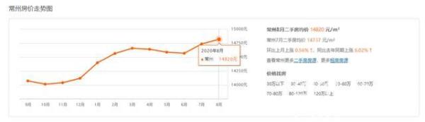 对于楼市偏热,常州市民这半年来感同身受。家住天宁区富强新村的尤先生疫情后本打算为3年后上小学的女儿购置一套学区房,实地探访的几个楼盘后发现价格飙升中。尤先生于是在8月初将目光转向了二手房,同样发现看中的双学区房挂牌价都已经超过了50000元/平米,单套房源最高价格更是达到了70239元/平米,环比涨幅近20%。尤先生说,看来买学区房的打算只能暂时放一放了。像尤先生这样,被学区房价格狂飙吓到打退堂鼓的常州市民近来不在少数。房地产业内人士向记者表示,由于常州义务教育阶段公立学校集团化办学的推进与民办学校摇号的严格实施,常州学区房带动的楼市火爆有愈演愈烈之势。据市场研究机构统计,常州2020年8月二手房均价为14820元/㎡,环比上涨 0.56%,同比上涨6.02%,常州二手房市场的天花板再次被捅破。常州房地产市场呈现区域热度分化态势。