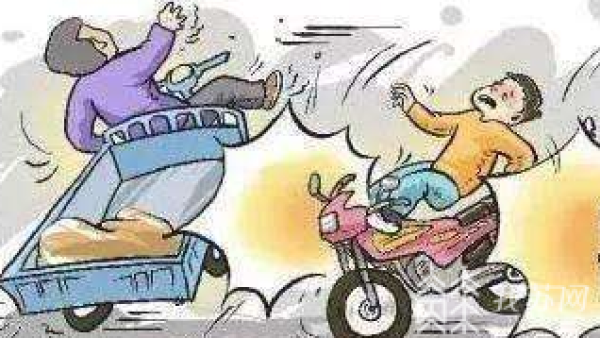 无证驾驶未登记摩托,撞上路边报废车