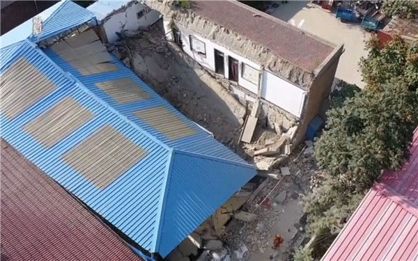 8月30日上午,新京报记者来到事发的襄汾县陈庄村聚仙饭店,该饭店靠近马路,斜对面是陶寺乡派出所。现场救援人员已经撤离,有抢修电力的工作人员还在工作,石块等建筑废料堆在饭店对面的空地上。