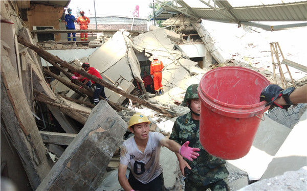 8月30日,“中国消防”官方微博发布消息称,消防人员在饭店坍塌的废墟下救援时看到,有一位父亲保持牢牢护住孩子的姿势,但两人均已遇难。消防人员忍痛将他们分开。