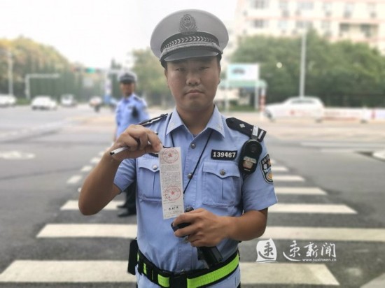 “您好!因为您驾驶电动自行车,未佩戴安全头盔,按照驾乘电动自行车‘新规’,首次罚款20元!”9月1日上午7点10分,在宿迁市区洪泽湖路与世纪大道交叉路口,宿迁市公安局交警支队二大队民警钟岳向市民袁女士宣读了处罚决定。据了解,这也是宿迁市驾乘电动自行车“新规”9月1日实施后,开出的首张罚单。