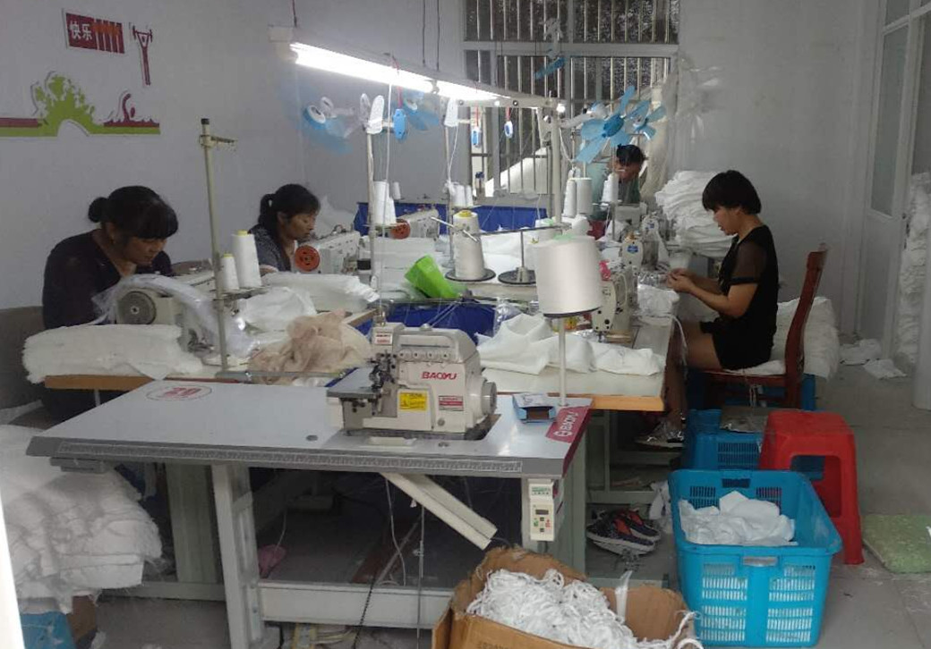 该加工点成立于今年4月,是杨香圃村与南通沃泰纺织品加工贸易有限公司对接后设立。据村党总支书记陈华介绍,前期,村里对该公司的信誉度和实力进行了调查,最后与之牵手。加工点主要承接沃泰公司的单子,进行来料加工,每月订单量在5万只左右。