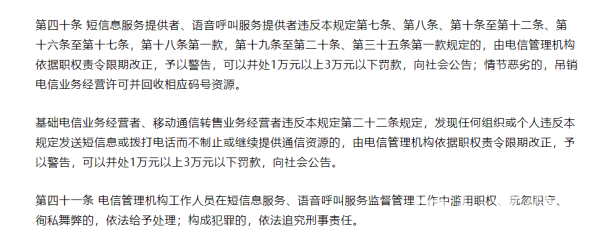 不过,此次《征求意见稿》和之前相比,在措辞和要求上,比现行有效的法规严格不少。比如,在处罚措施上,《征求意见稿》规定,可以处1万元以上3万元以下罚款;情节恶劣的,可以吊销电信业务经营许可并回收相应码号资源;规定要求,基础电信业务经营者应当建立预警监测、大数据研判等机制;工信部也将组织建立全国统一的"谢绝来电"平台,引导相关组织或个人尊重用户意愿规范拨打商业性电话等。