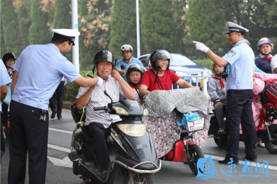 “大爷,看你这头盔下面的带子都没系好,这要出现紧急情况,头盔不就飞出去了吗?哪还有防护功能?”9月1日,沭阳县、泗阳县、泗洪县等多地民警发现,一些市民的头盔完全没有固定住,于是,上前劝导并帮其戴好。