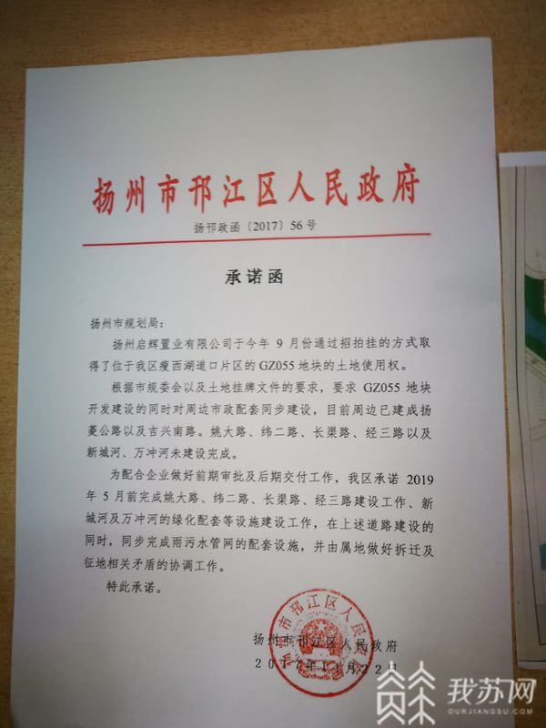 业主们告诉记者,其实早在2017年11月22日,小区建设用地拍卖之初,邗江区人民政府就向原扬州市规划局发出承诺函,承诺包括姚大路在内的六条路,在2019年5月前完成。那么,当初这份承诺函是怎么来的,有关部门为什么要出具承诺函呢?