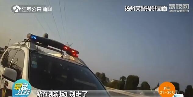 在高速上不能随意停车,车上的驾乘人员不得随意下车走动,这是常识。但8月30日,在京沪高速真武收费站附近发生了危险一幕,一名男子竟然在超车道上逆行寻找着什么。扬州交警得知这一情况后,立刻赶往了现场。