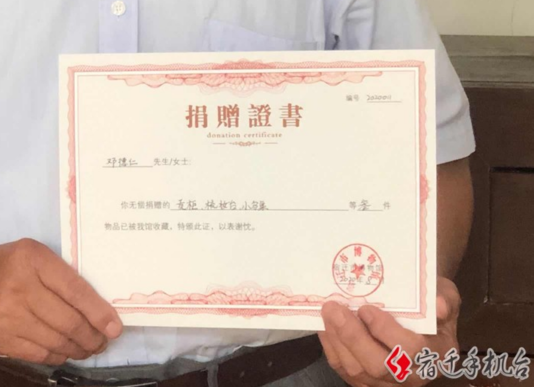 之后邓德仁就联系了市博物馆的工作人员,工作人员将一个贡柜、一个小乌桌和老式梳妆台带回博物馆,市博物馆为邓德仁出具了捐赠证书。这些捐赠物为以后建设民俗文物博物馆提供了非常珍贵的实物资料。