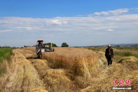 农民们用机械和手工的方式“抢收”辛苦种植了半年的粮食。 万小莲 摄