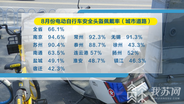 “南京、常州都是从7月份就开始对不使用安全头盔(行为)进行劝导以及处罚,其他设区市也分别跟进,电动自行车安全头盔佩戴率明显上升。现在像南京、常州、无锡……这些重要的大城市,以及(管理条例)启动比较早的城市,都达到了90%以上。”