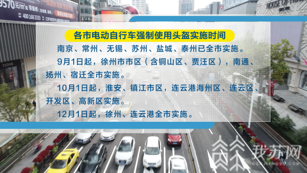 从9月开始,徐州市区、南通、扬州、宿迁开始对不按要求佩戴头盔的驾乘人员进行处罚。10月起,淮安、镇江市区,连云港部分区开始施行罚款举措。12月起,江苏全域实行。