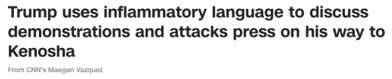 △CNN新闻标题:在前往基诺沙途中,特朗普使用煽动性语言讨论示威游行,并抨击记者