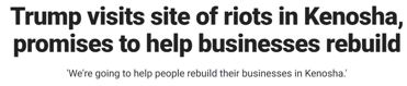 △福克斯新闻标题:特朗普前往基诺沙骚乱现场,承诺帮助企业重建