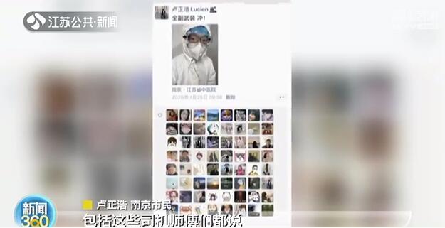卢正浩学的是护理专业,今年过年期间还在医院急诊实习。那天,他穿着防护服在急诊上班的时候,中午下班的时候拍了一张照片发到朋友圈。过了十几分钟,朋友圈立刻有好多司机朋友的点赞,他们说:小卢、浩浩,在外面注意安全!“