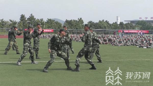 在南京江宁高等职业技术学校2020级新生军训开营仪式上,军训教官为同学们进行了一场规范化的军事表演。教官们矫健的身姿,干净利落的动作,引起在场学生阵阵惊呼。