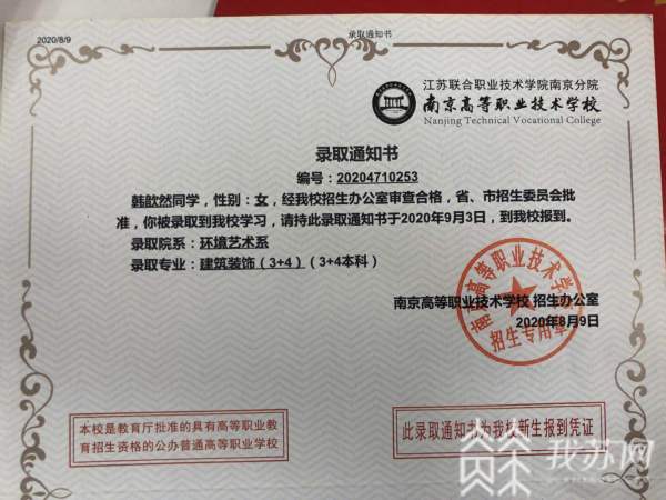 “同学,请出示一下健康码和行程码......”9月3日,南京高等职业技术学校迎来新生报到,这位正在办理报到手续的新生名叫韩歆然,今年中考成绩619分,在南京全市5.5万名考生中,位居前4000名,超过了大多数四星高中的录取分数线,但她坚持选择了南京高职校与金陵科技学院3+4分段培养建筑装饰专业,并且得到了父母的支持。