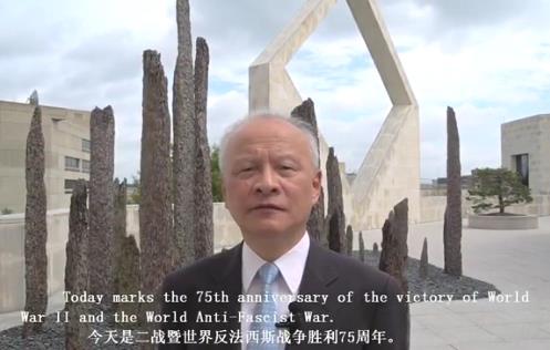 当地时间9月3日,为纪念二战胜利75周年,中国驻美国大使崔天凯发表视频致辞。