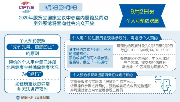 一是重要活动。9月4日晚8点举办全球服务贸易峰会,将邀请国家领导人、外国政要、国际组织负责人、世界500强和行业领军企业负责人出席,峰会前国家领导人还将进行巡馆。