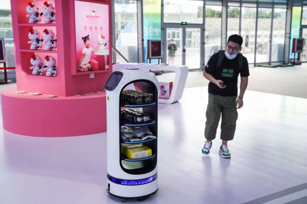 ↑本届服贸会期间,现场将云集200多台机器人“同台竞技”,比拼服务技能。经济日报记者张倩摄