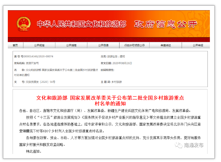 文化和旅游部、国家发展改革委9月2日发布第二批全国乡村旅游重点村名单,680个村入围。
