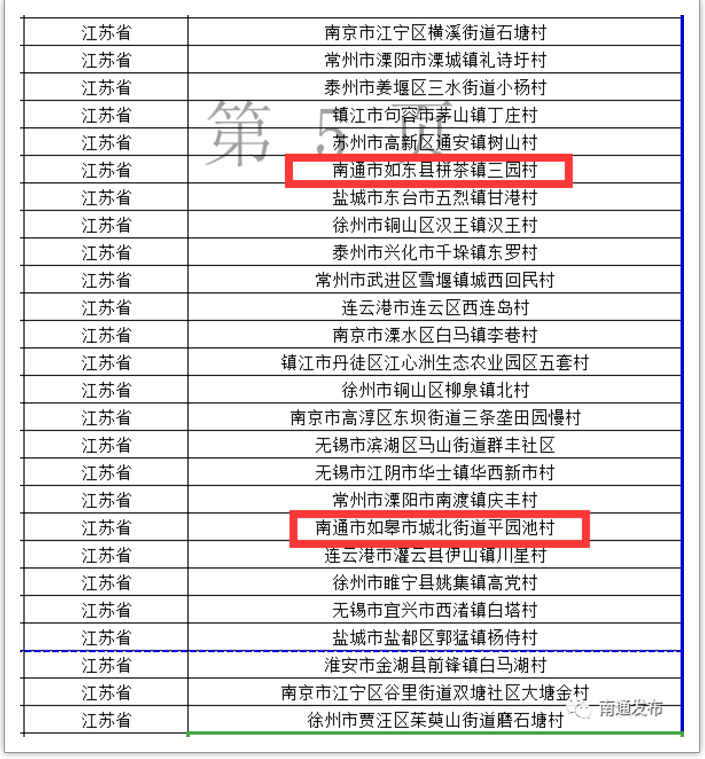 咱南通的如东县栟茶镇三园村、如皋市城北街道平园池村上榜啦~
