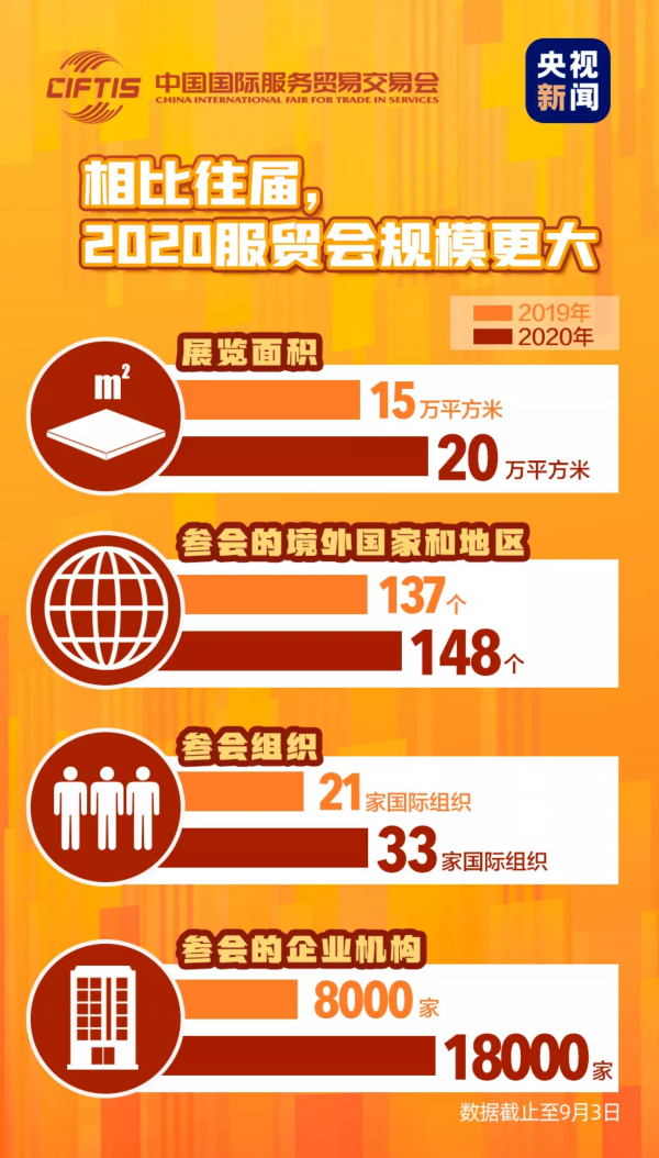 今天(9月4日),2020年中国国际服务贸易交易会(简称“服贸会”)在北京开幕。这是新冠肺炎疫情发生以来,中国在线下举办的第一场重大国际经贸活动,受到全球的广泛关注。
