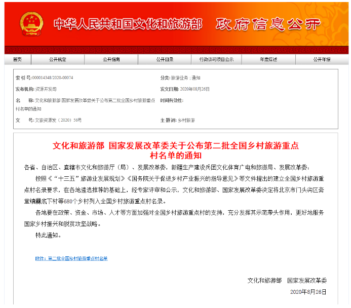 日前,文化和旅游部国家发展改革委发布第二批全国乡村旅游重点村名单。