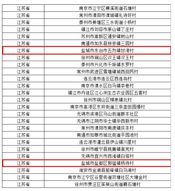 盐城两个村上榜,分别是: