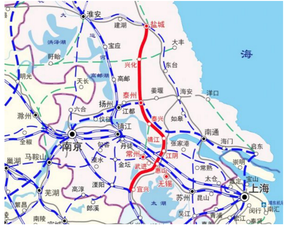 盐泰锡常宜铁路项目全线总体设计单位为中铁上海设计院,7月17日起,项目初测工作正式启动。